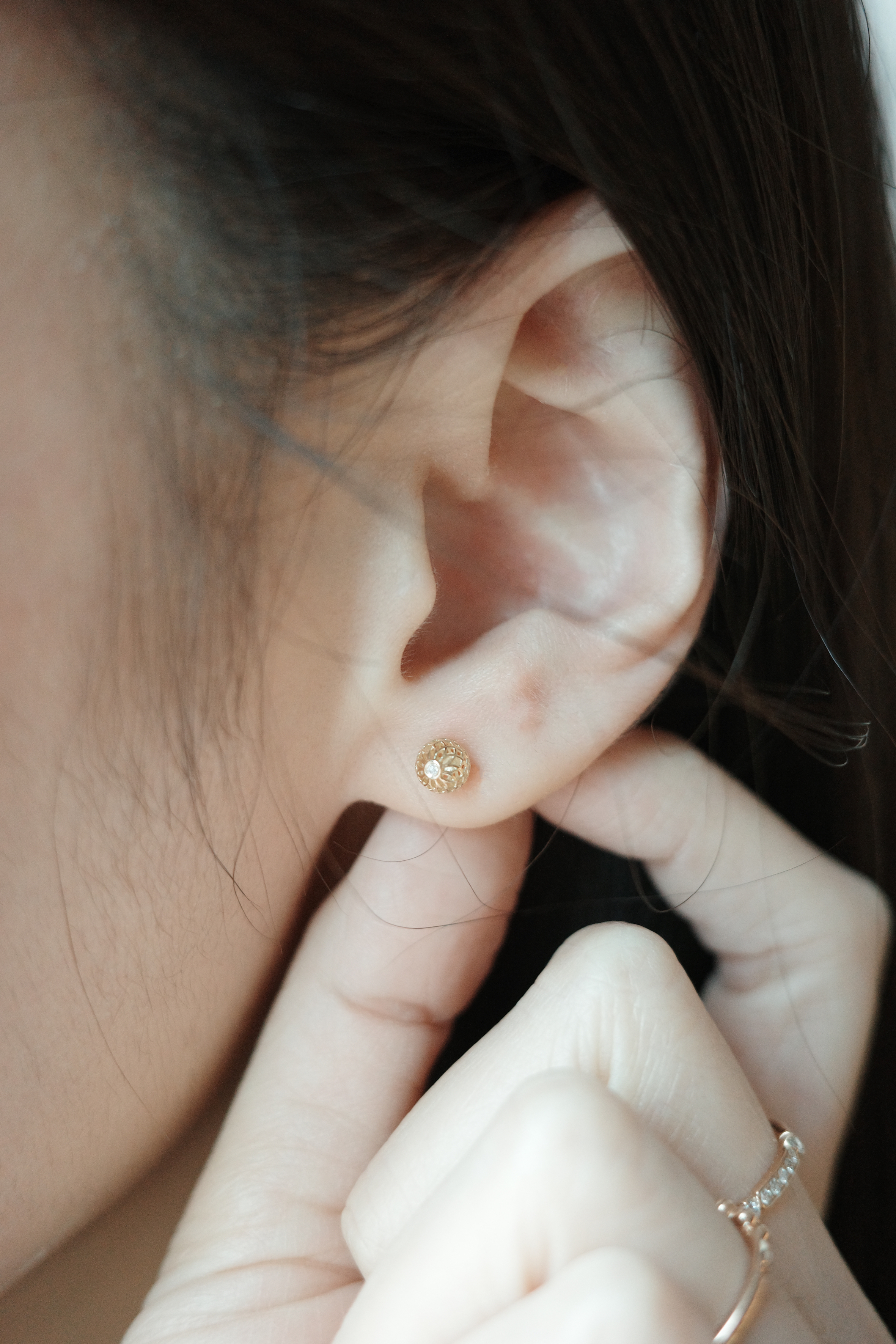 規格:18k蕾絲球5mm|18k耳針長約1.1cm